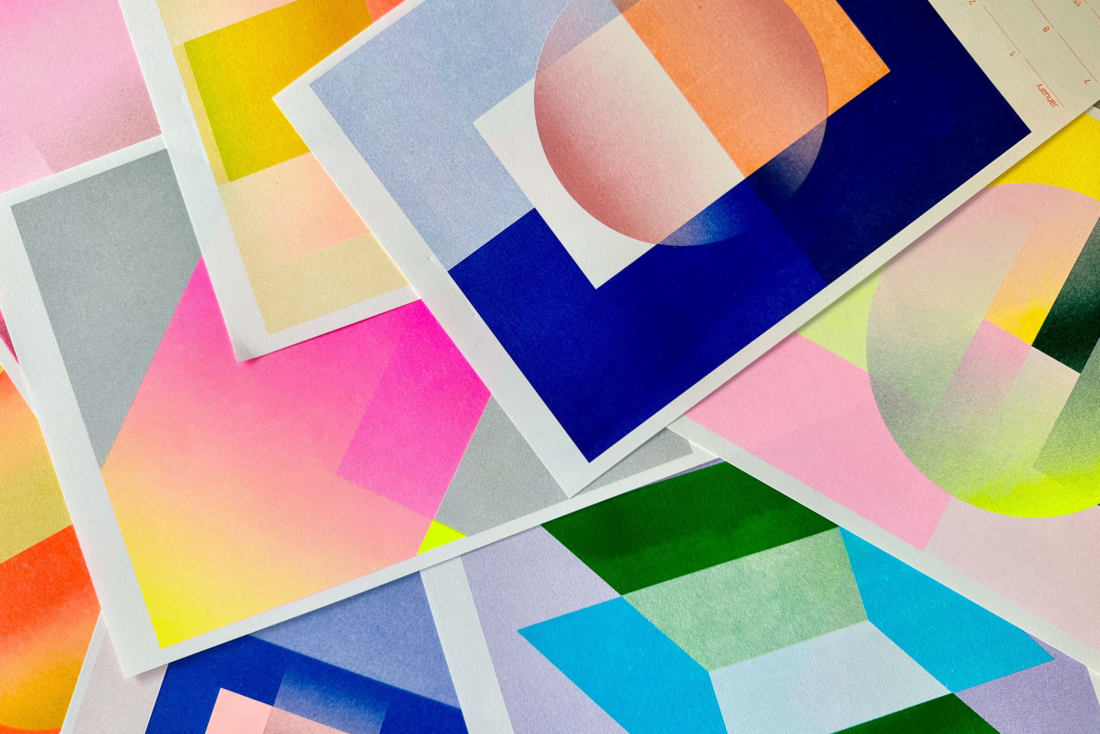 Neben den Druckaufträgen gestalten und produzieren wir auch eigene Papeterie: Postkarten, Poster, Kalender und vieles mehr.